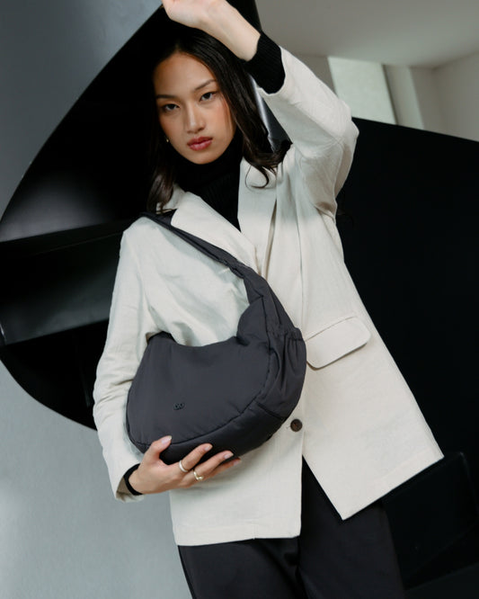Sold outL COSY LUXE CRESCENT BAG CHARCOAL