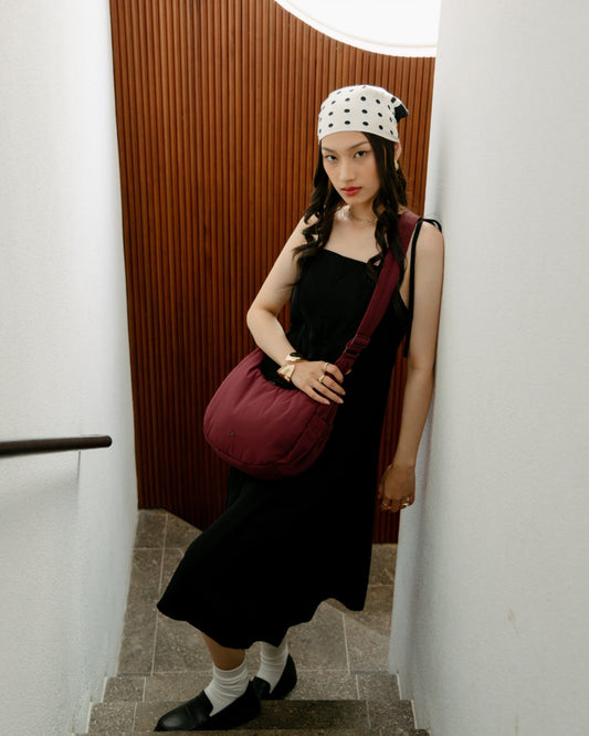 Sold outL COSY LUXE CRESCENT BAG WINE