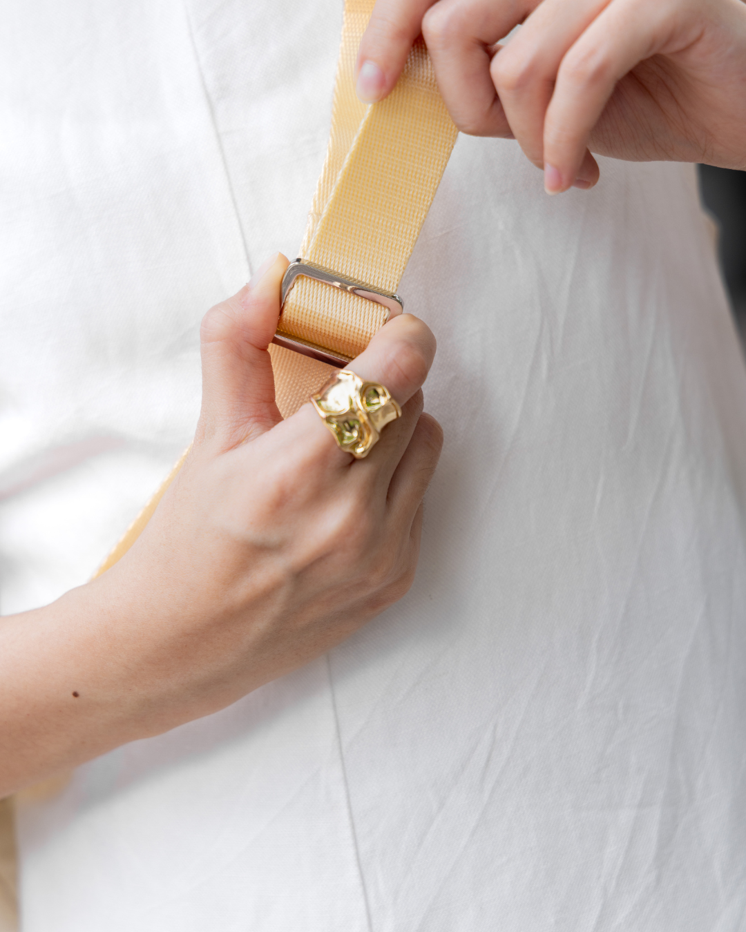 • Wide, adjustable webbing strap for comfy crossbody or shoulder wear