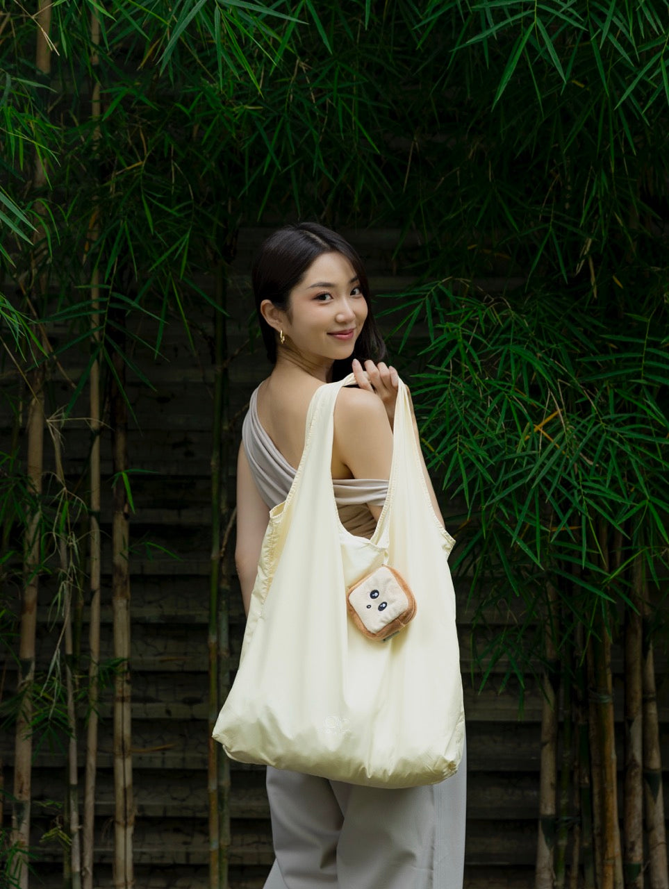 This reusable tote bag comes folded inside an adorable toast-shaped zip pouch that clips right onto your bag or keys for on-the-go convenience. Compact, lightweight, and irresistibly cute, each Toastlet comes in one of five collectible designs — Happy, Cheeky, Innocent, Sleepy , and a secret surprise — each with its own matching bag colour.